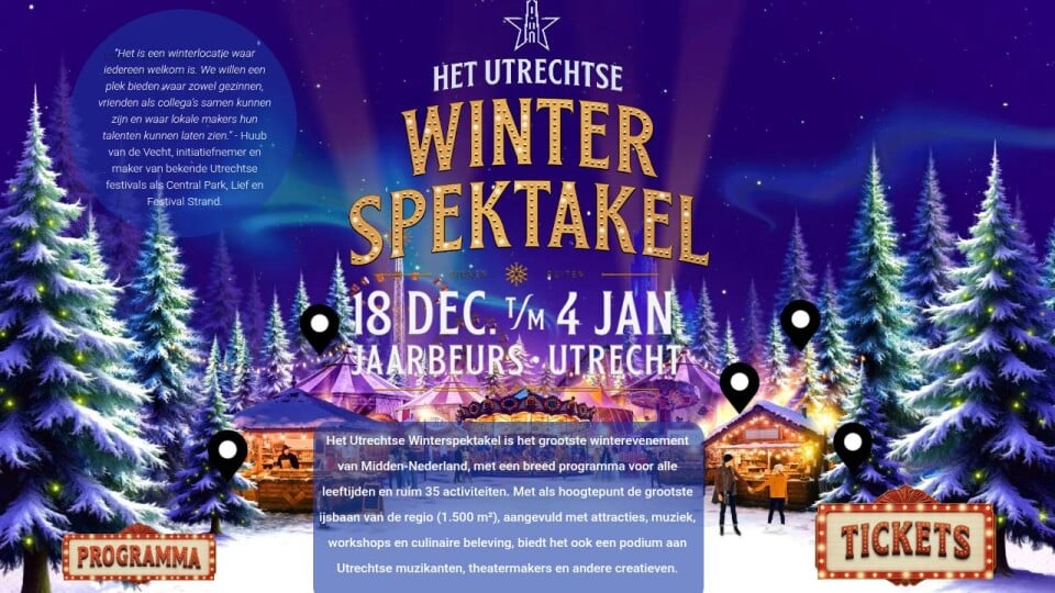 “Het is een winterlocatie waar iedereen welkom is. We willen een plek bieden waar zowel gezinnen, vrienden als collega’s samen kunnen zijn en waar lokale makers hun talenten kunnen laten zien.” - Huub van de Vecht, initiatiefnemer en maker van bekende Utrechtse festivals als Central Park, Lief en Festival Strand.